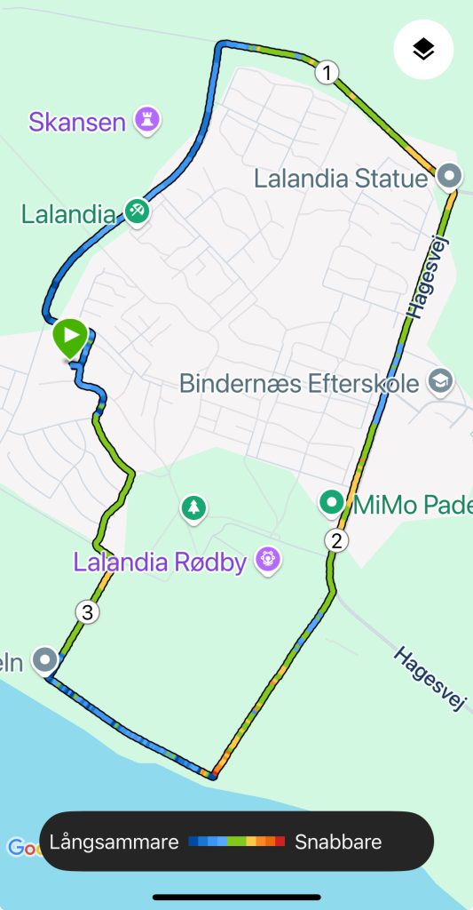 Försökte hålla ett lugnt tempo i ca: 6:30/km, men det är svårt.