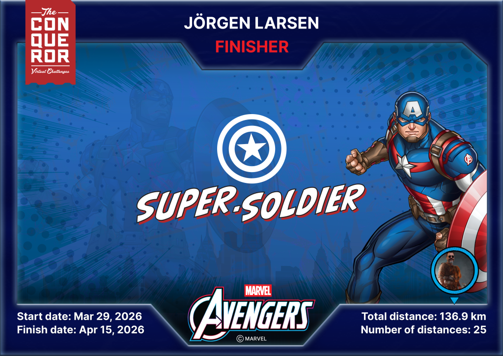 Ännu en dag med en hel del steg avklarad och det kom besked om att jag passerat 60% av den totala sträckan i Avengers – Arc Reactor utmaningen.