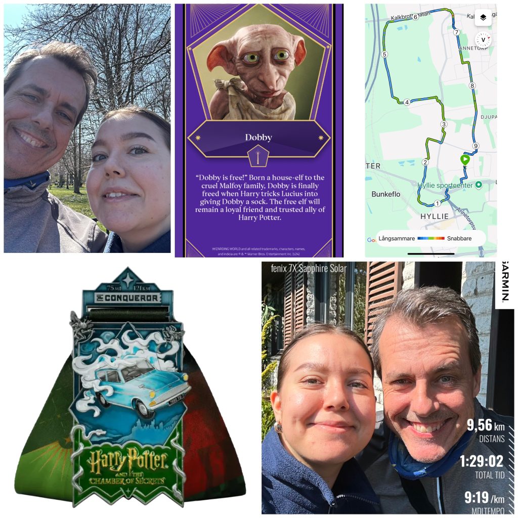 Det visade sig att slutsträckan hamnade på hela 9,56 km. Detta var slutet på utmaningen och förutom att vi fick den sista collectiblen ”Dobby”, vi fick våra certifikat också.